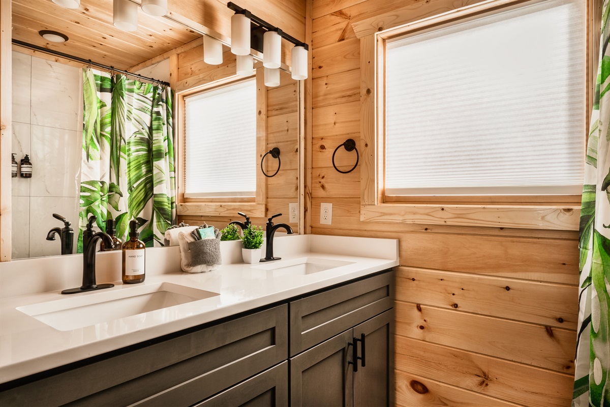 - Bunk bedroom with one queen over queen bunk on lower level with full bathroom just outside the door